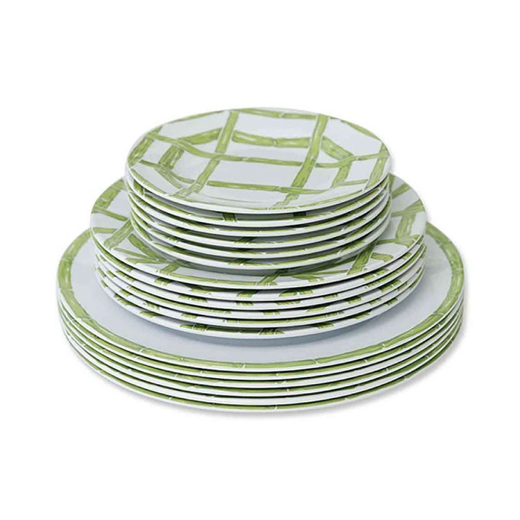 Keramický riad je veľmi krásny, no je ťažký a hrozí pri ňom riziko rozbitia. Ak teda máte deti alebo chcete ísť na piknik, sada 6 melamínových tanierov Pink Dinner je veľmi dobrou voľbou. Jeho tvar je veľmi jednoduchý. Na bielom tanieri sú úhľadné zelené vzory, ktoré pripomínajú bambusový les, takže môže priniesť svieži a prirodzený pocit. Vďaka rôznym veľkostiam je vhodný na uchovávanie rôznych potravín. Môžete ho použiť na uloženie šalátov, ovocia, zeleniny, koláčov a iných potravín. Vďaka vysokému komfortu je vhodný na večere, večierky, reštaurácie a iné miesta.